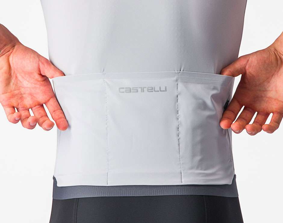 Le dos du maillot comprend un élastique de préhension en silicone et un panneau élastique avant collé sans couture. En outre, il dispose de trois poches arrière, ainsi que d'une poche de sécurité cachée à fermeture éclair. Enfin, le maillot est orné d'un logo réfléchissant dans le dos, qui garantit la visibilité dans des conditions de faible luminosité.